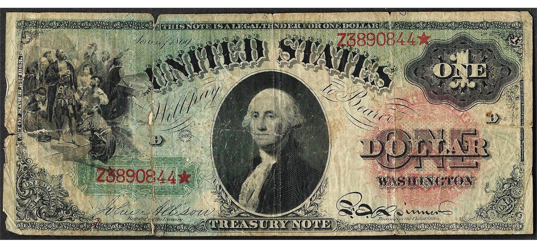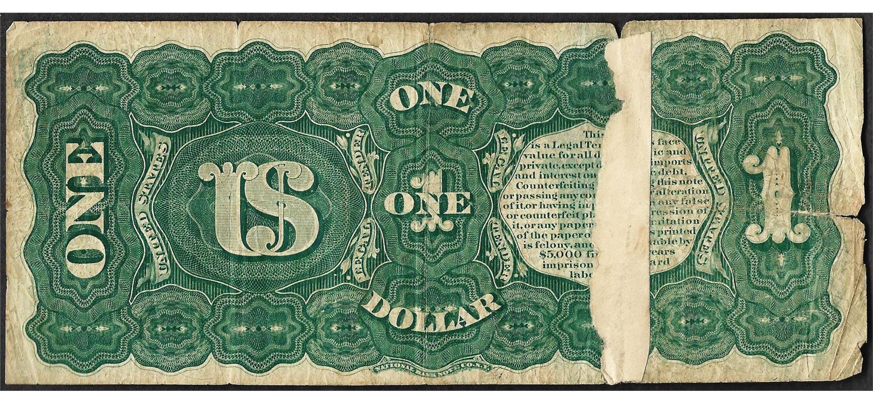 One 1869 $1 Rainbow Legal Tender Note Tape Repaired.