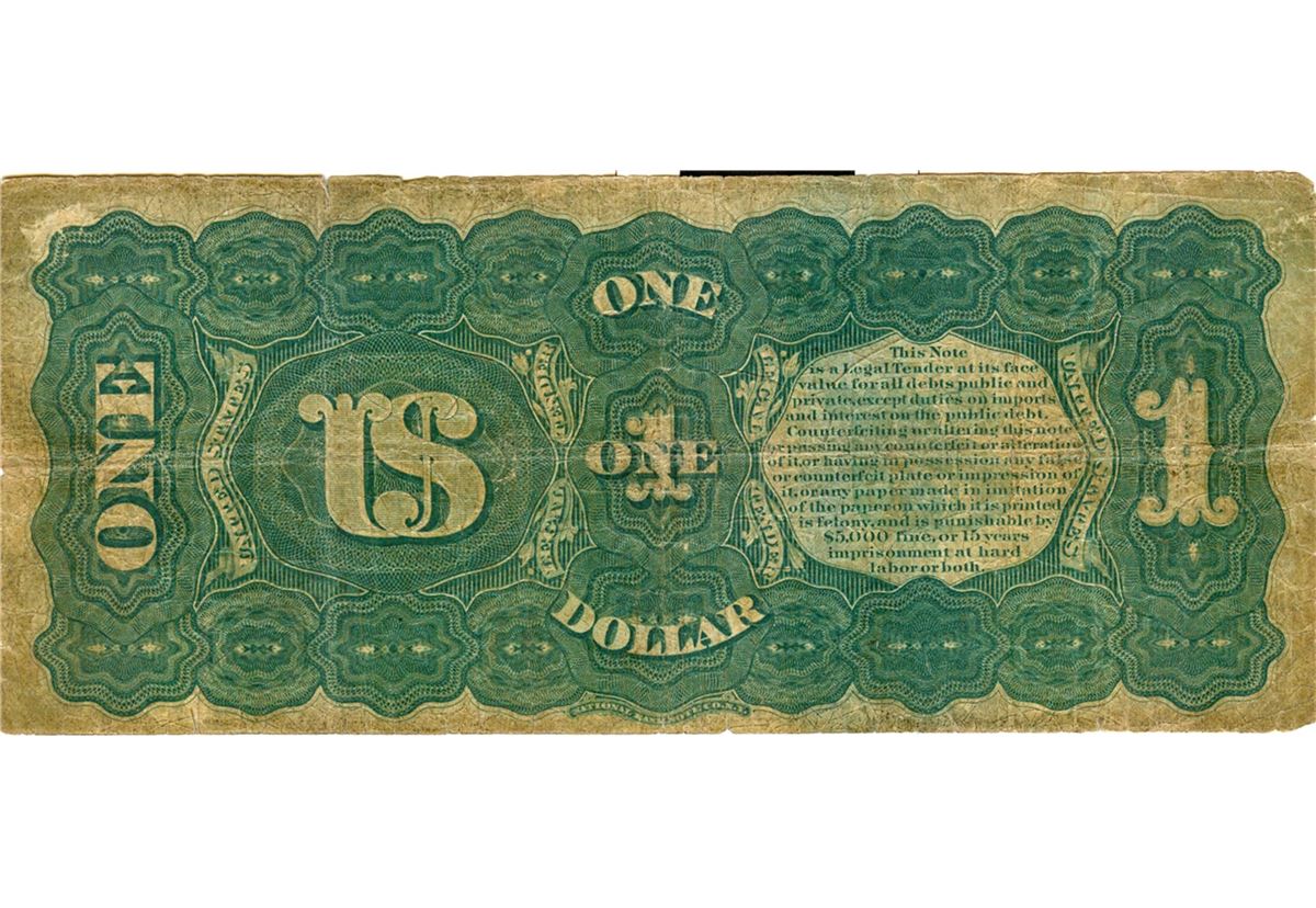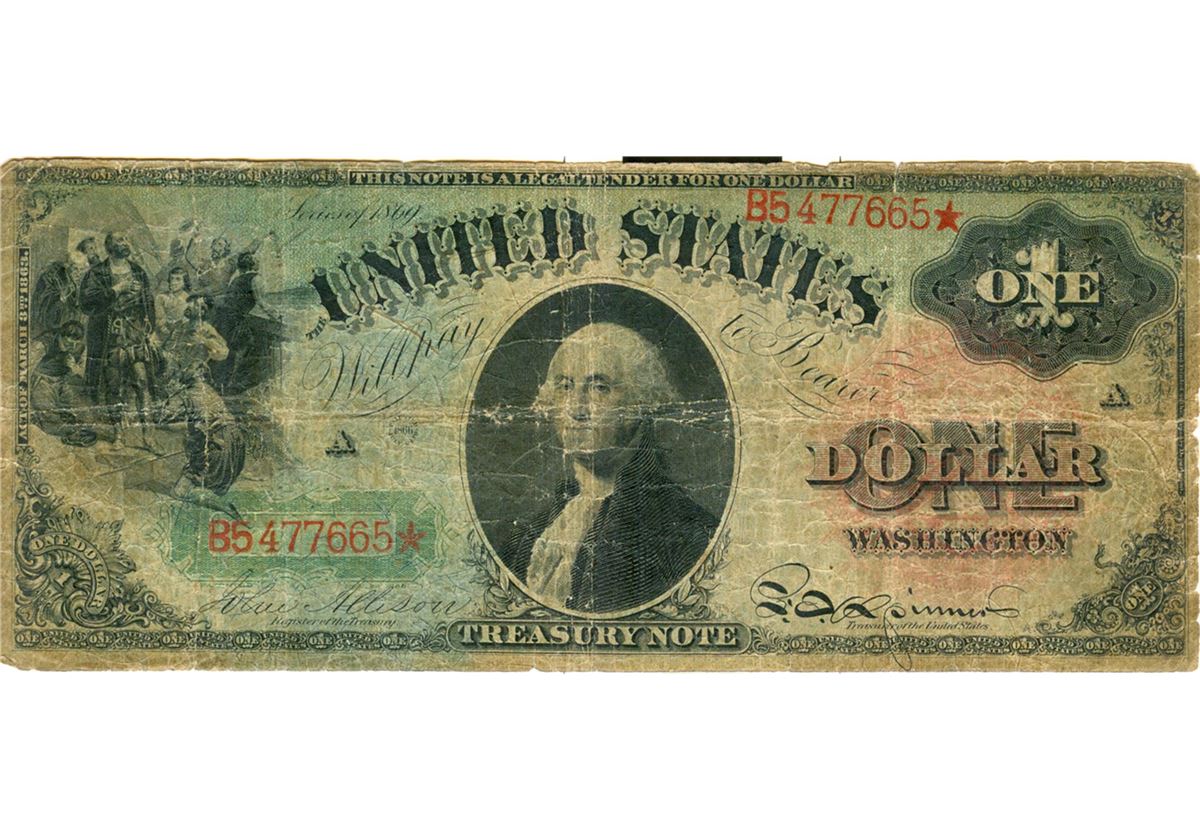 One 1869 $1 "Rainbow" Star Serial Treasury Note.