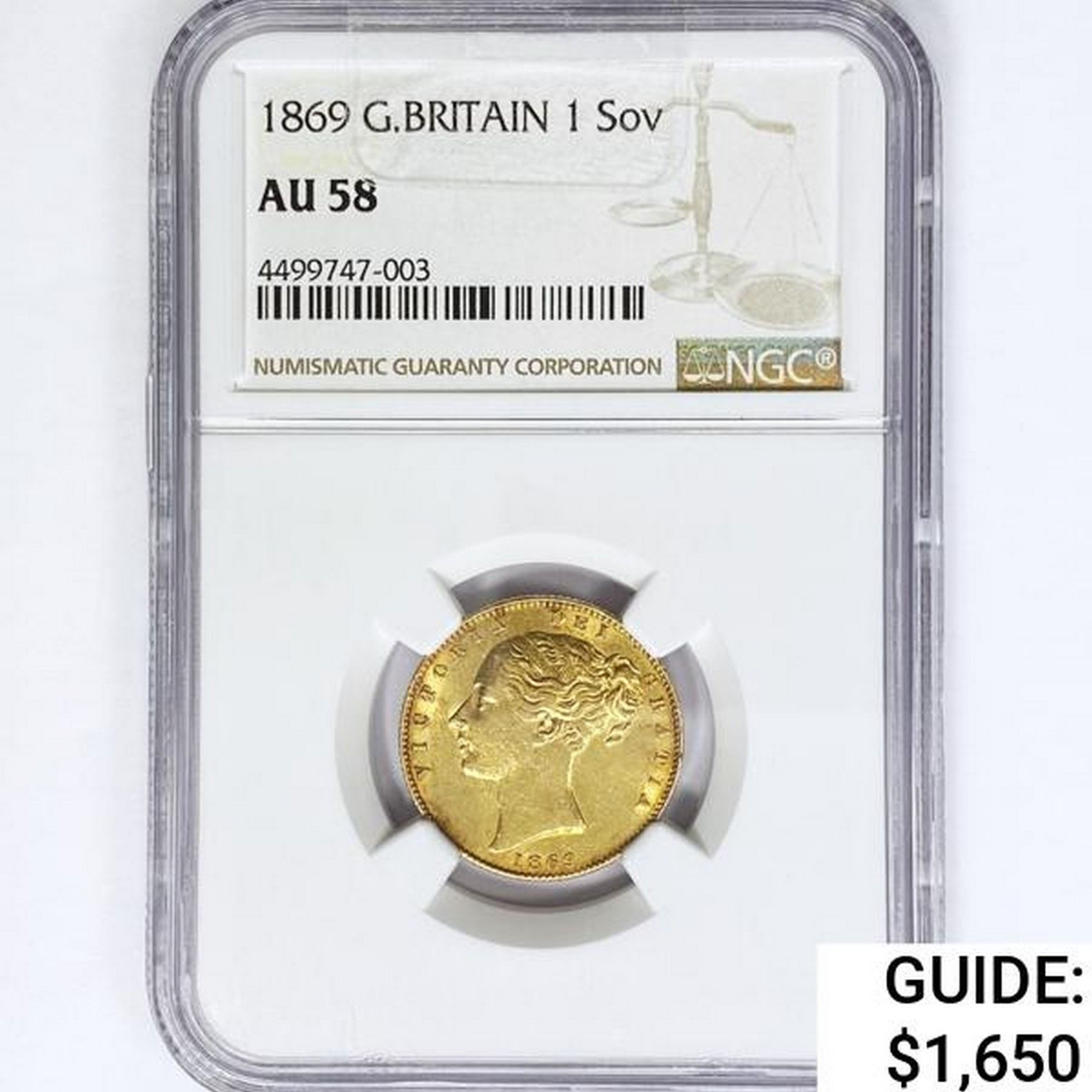 1869 1 Sov .24oz G.Britain Gold NGC AU58