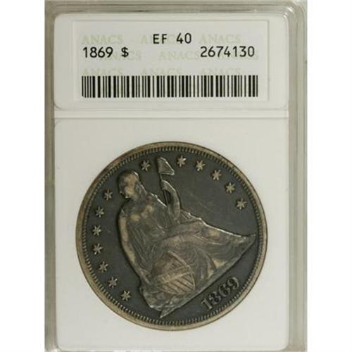 <B>1869 $1 XF40 ANACS.</B></I> NGC Census: (3/70). PCGS Population (12/112). Mintage: 423,700. Numismedia Wsl. Price for NGC/PCGS coin in XF40: $425. (#6962)<BR><BR><B>Coin Engraver:</B> Christian Gobrecht<BR><BR><b>Shipping:</b> Coins & Currency (<a target="_blank" href="http://www.heritageauctions.com/common/shipping.php">view shipping information</a>)