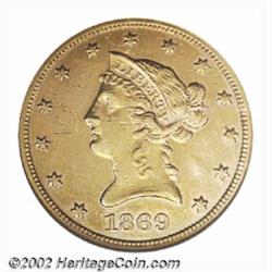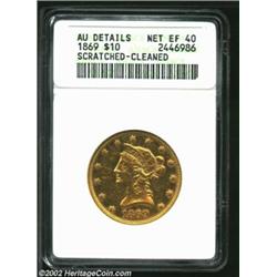 1869 $10--Scratched, Cleaned--ANACS. AU Details, Net XF40. More difficult to obtain than either the.