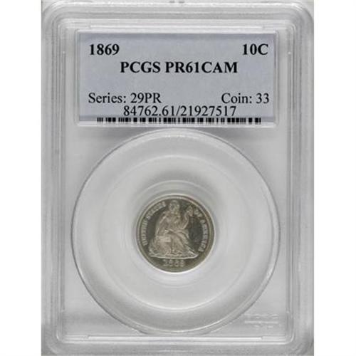 <B>1869 10C PR61 Cameo PCGS.</B></I> PCGS Population (1/14). NGC Census: (1/16). (#84762)<BR><BR><b>Shipping:</b> Coins & Currency (<a target="_blank" href="http://www.heritageauctions.com/common/shipping.php">view shipping information</a>)