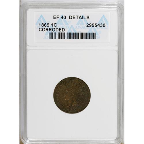<B>1869 1C --Corroded--ANACS. XF40 Details.</B></I> NGC Census: (15/271). PCGS Population (26/253). Mintage: 6,420,000. Numismedia Wsl. Price: $308. (#2094)<BR><BR><b>Shipping:</b> Coins & Currency (<a target="_blank" href="http://www.heritageauctions.com/common/shipping.php">view shipping information</a>)