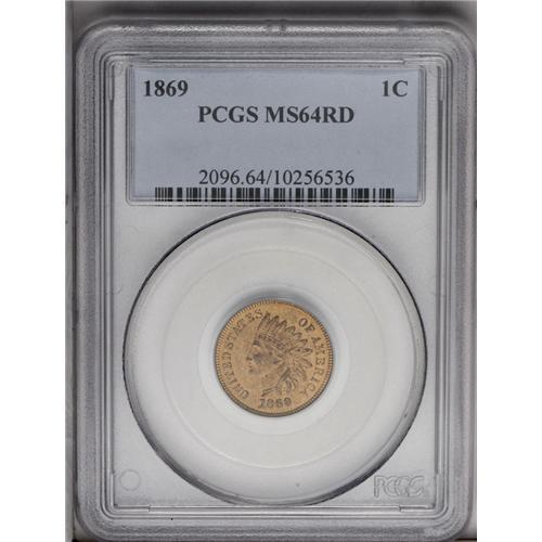 <B>1869<1C> MS64 Red PCGS.</B></I> This is an extremely important near-Gem example with fully brilliant red color. This date is seldom seen in its original state. Traces of brown color are evident only on the highest points of the reverse. A few tiny specks keep this from a higher grade.