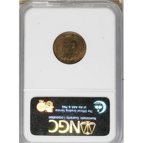 <B>1869 1C MS64 Red and Brown NGC.</B></I> Sharply struck and well preserved, with vibrant red-orange and deep-purple toning, and a great cartwheel shimmer in the obverse fields. Minor carbon flecks limit the grade, while contact marks seem nonexistent. <BR><BR><B>Coin Engraver:</B> James B. Longacre<BR><BR><b>Shipping:</b> Coins & Currency (<a target="_blank" href="http://www.heritageauctions.com/common/shipping.php">view shipping information</a>)
