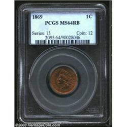 1869 1C MS64 Red and Brown PCGS. Pleasingly sharp throughout, the surfaces blend orange-red luster a
