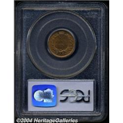 <table><tr><td><TABLE cellSpacing=0 cellPadding=0 width="100%" bgColor=#000000 border=0><TBODY> <TR><TD width="100%"><TABLE cellSpacing=1 cellPadding=3 width="100%" border=0><TBODY><TR><TD width="100%" bgColor=#79735c><FONT face=arial color=#ffffff size=3><B>Description</B> </FONT></TD></TR><TR><TD width="100%" bgColor=#ffffff><FONT face=arial size=2><B>1869 1C MS64 Red and Brown PCGS.</B></I> Snow-4, "Very Scarce." The 69 in the date is noticeably repunched north. Distinguished from other 1869/9 varieties by a mint-made die line from a denticle below the right side of the 8 in the date. Mostly golden-brown in color, but the portrait and left obverse field offer lilac hues. </FONT></TD></TR></TBODY></TABLE></TD></TR></TBODY></TABLE><BR><A name=PricesRealized></A><TABLE cellSpacing=0 cellPadding=0 width="100%" bgColor=#000000 border=0><TBODY><TR><TD width="100%"><TABLE cellSpacing=1 cellPadding=3 width="100%" border=0><TBODY><TR><TD width="100%" bgColor=#79735c><A name=PR><FONT face=arial color=#ffffff size=3><B>Previous Prices from Heritage Auctions</B> </FONT></A></TD></TR><TR><TD bgColor=#f6f6ed><TABLE cellSpacing=0 cellPadding=0 width="100%" border=1><TBODY><TR><TD align=middle width="33%"><B>Date</B></TD><TD align=middle width="33%"><B>Service</B></TD><TD align=middle width="33%"><B>Price</B></TD></TR><TR bgColor=whitesmoke><TD width="33%"><B>09/20/2003</B></TD><TD width="33%">PCGS</TD><TD width="33%">$1,006.25</TD></TR><TR bgColor=whitesmoke><TD width="33%"><B>09/20/2003</B></TD><TD width="33%">PCGS</TD><TD width="33%">$805.00</TD></TR><TR bgColor=whitesmoke><TD width="33%"><B>07/29/2003</B></TD><TD width="33%">ANACS</TD><TD width="33%">$1,380.00</TD></TR><TR bgColor=whitesmoke><TD width="33%"><B>05/03/2003</B></TD><TD width="33%">PCGS</TD><TD width="33%">$862.50</TD></TR><TR bgColor=whitesmoke><TD width="33%"><B>01/11/2003</B></TD><TD width="33%">PCGS</TD><TD width="33%">$747.50</TD></TR><TR bgColor=whitesmoke><TD width="33%"><B>04/27/2002</B></TD><TD width="33%">ANACS</TD><TD width="33%">$1,265.00</TD></TR><TR bgColor=whitesmoke><TD width="33%"><B>01/12/2002</B></TD><TD width="33%">ANACS</TD><TD width="33%">$747.50</TD></TR><TR bgColor=whitesmoke><TD width="33%"><B>08/08/2001</B></TD><TD width="33%">PCGS</TD><TD width="33%">$1,092.50</TD></TR><TR bgColor=whitesmoke><TD width="33%"><B>11/17/2000</B></TD><TD width="33%">NGC</TD><TD width="33%">$661.25</TD></TR><TR bgColor=whitesmoke><TD width="33%"><B>05/05/2000</B></TD><TD width="33%">NGC</TD><TD width="33%">$690.00</TD></TR><TR bgColor=whitesmoke><TD width="33%"><B>03/02/2000</B></TD><TD width="33%">NGC</TD><TD width="33%">$661.25</TD></TR><TR bgColor=whitesmoke><TD width="33%"><B>11/18/1999</B></TD><TD width="33%">PCGS</TD><TD width="33%">$632.50</TD></TR><TR bgColor=whitesmoke><TD width="33%"><B>09/26/1998</B></TD><TD width="33%">NGC</TD><TD width="33%">$517.50</TD></TR><TR bgColor=whitesmoke><TD width="33%"><B>02/22/1997</B></TD><TD width="33%">PCGS</TD><TD width="33%">$467.50</TD></TR><TR bgColor=whitesmoke><TD width="33%"><B>08/17/1996</B></TD><TD width="33%">NGC</TD><TD width="33%">$797.50</TD></TR><TR bgColor=whitesmoke><TD width="33%"><B>08/17/1996</B></TD><TD width="33%">NGC</TD><TD width="33%">$935.00</TD></TR><TR bgColor=whitesmoke><TD width="33%"><B>08/17/1996</B></TD><TD width="33%">PCGS</TD><TD width="33%">$880.00</TD></TR><TR bgColor=whitesmoke><TD width="33%"><B>06/01/1996</B></TD><TD width="33%">NGC</TD><TD width="33%">$396.00</TD></TR><TR bgColor=whitesmoke><TD width="33%"><B>04/26/1996</B></TD><TD width="33%">PCGS</TD><TD width="33%">$495.00</TD></TR><TR bgColor=whitesmoke><TD width="33%"><B>08/16/1995</B></TD><TD width="33%">NGC</TD><TD width="33%">$495.00</TD></TR><TR bgColor=whitesmoke><TD width="33%"><B>10/22/1993</B></TD><TD width="33%">NGC</TD><TD width="33%">$445.50</TD></TR><TR bgColor=whitesmoke><TD width="33%"><B>05/01/1999</B></TD><TD width="33%">NGC</TD><TD width="33%">$661.00</TD></TR><TR bgColor=whitesmoke><TD width="33%"><B>01/01/1999</B></TD><TD width="33%">PCGS</TD><TD width="33%">$715.00</TD></TR></TBODY></TABLE></TD></TR><TR><TD bgColor=#ffffff><FONT face=arial size=1 ?>PLEASE NOTE: All prices realized reflect the final hammer price PLUS the buyer's premium in auctions that charge a buyer's premium. Each item has a notation at the top of the listing indicating whether that lot included a buyer's premium. Example: A item that sells with a final hammer price of $100 and a 20% buyer's premium will display with a price realized of $120. All information listed is intended to be as accurate as possible, but errors are possible. Please use this guide carefully and inform us of any inaccuracies. </FONT></TD></TR></TBODY></TABLE></TD></TR></TBODY></TABLE><BR><TABLE cellSpacing=0 cellPadding=0 width="100%" bgColor=#000000 border=0><TBODY><TR><TD width="100%"><TABLE cellSpacing=1 cellPadding=3 width="100%" border=0><TBODY><TR><TD width="100%" bgColor=#79735c colSpan=6><FONT face=arial color=#ffffff size=3><B>Price Guide*</B> </FONT></TD></TR><TR bgColor=#f6f6ed><TD align=middle><B>Grade</B> </TD><TD align=middle><B>Coin World<BR>(Trends)</B> </TD><TD align=middle><B>Numismedia<BR>Retail</B> </TD><TD align=middle><B>Numismedia<BR>Wholesale</B> </TD><TD align=middle><B>Coin<BR>Universe</B> </TD><TD align=middle><B>Heritage<BR>Value Index</B> </TD></TR><TR bgColor=#ffffff><TD align=middle>63</TD><TD align=right>$700.00</TD><TD align=right>$690.00</TD><TD align=right>$575.00</TD><TD align=right>$555.00</TD><TD align=right>$340.68</TD></TR><TR style="FONT-WEIGHT: bold" bgColor=#cccfdd><TD align=middle>64</TD><TD align=right>$1,000.00</TD><TD align=right>---</TD><TD align=right>$825.00</TD><TD align=right>$620.00</TD><TD align=right>$588.00</TD></TR><TR bgColor=#ffffff><TD align=middle>65</TD><TD align=right>$1,500.00</TD><TD align=right>---</TD><TD align=right>$1,100.00</TD><TD align=right>$1,375.00</TD><TD align=right>$1,009.38</TD></TR><TR bgColor=#ffffff><TD colSpan=6><FONT size=1>*All information listed i