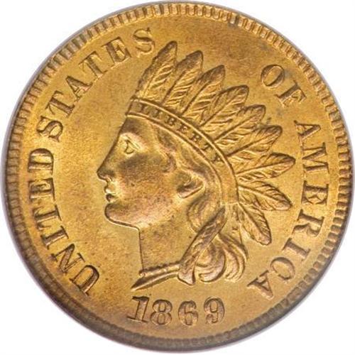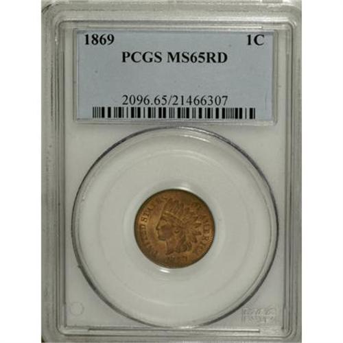 <B>1869 1C MS65 Red PCGS. CAC.</B></I> FS-008.3, Snow-3c. The 69 in the date is repunched south. Once believed to be an 1869/8, and actually listed as such in Breen's <I>Encyclopedia</B></I> and in early editions of <I>The Cherrypickers' Guide.</B></I> This bold repunched date variety maintains a separate <I>Guide Book</B></I> listing. This is a well struck Gem with booming luster and splendid copper-red color. Exquisitely preserved, as only the occasional small carbon fleck precludes perfection. Population: 28 in 65 Red, 7 finer (10/07).<BR><I>From The Santa Fe Collection, Part Two.</B></I><BR><BR><B>Coin Engraver:</B> James B. Longacre<BR><BR><b>Shipping:</b> Coins & Currency (<a target="_blank" href="http://www.heritageauctions.com/common/shipping.php">view shipping information</a>)