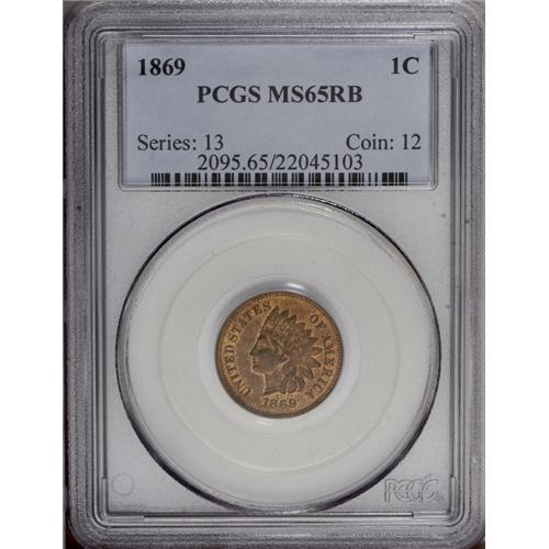 1869 1C MS65 Red and Brown PCGS. Snow-3d Die stage C, 1869[1C] MS65 Red and Brown PCGS.