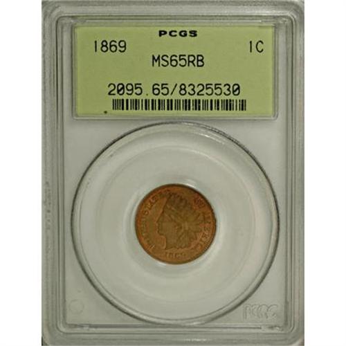 <B>1869 1C MS65 Red and Brown PCGS.</B></I> Violet and chocolate-brown shadings are prominent at the centers, while the margins offer rich rose and copper-orange. Well-defined with excellent eye appeal. PCGS has graded just four finer Red and Brown pieces (12/07).<BR><BR><B>Coin Engraver:</B> James B. Longacre<BR><BR><b>Shipping:</b> Coins & Currency (<a target="_blank" href="http://www.heritageauctions.com/common/shipping.php">view shipping information</a>)