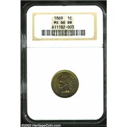 1869 1C MS66 Brown NGC. Very well defined and toned in swirling hues of apricot and steel-blue, adding liberal splashes of reddish-orange color on the reverse. A particularly nice example of this scarcer issue within the budget-priced brown category. Important notice: We expect to be auctioning lots at the rate of 200-250 per hour. On occasion eBay live bid software cannot keep up with the pace of the auctions where 4-5 lots per minute can hammer down, so we recommend that you place a realistic absentee bid now as insurance to avoid disappointment. Also please note that all Heritage/CAA lots purchased through eBay Live carry a 20% Buyer's Premium. Please make sure you read the Terms and Conditions.