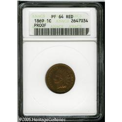 <B>1869 1C  PR64 Red ANACS.</B></I> Orange patina visits each side of this well struck Indian cent. Some reflectivity is apparent when the coin is tilted under a light.    Lot:5290