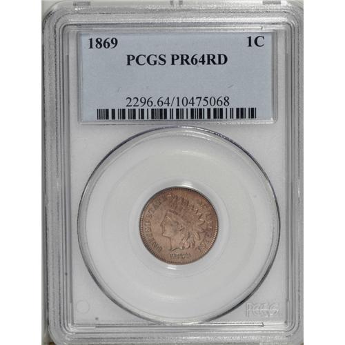 1869 1C PR64 Red PCGS. A vivid piece with fresh orange