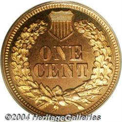 <table><tr><td><table><tr><td>1869 1C PR65 Red Cameo PCGS. There are two reasons why so few cameo 1869 cents are known today: first, the Mint's method of proof production in the late 1860s and early 1870s entailed polishing the dies after they were hardened not before; and second, many coins were struck with leftover, worn reverse dies. This particular piece has notably deep mirrors in the fields and it must have been one of the first coins struck from a new pair of dies as the devices are nicely frosted. The rich crimson-red surfaces show a slight undertone of lime-green as well as original orange-red coloration. Population: 2 in 65, 2 finer (3/04). <BR><BR><B>Important notice:</B> Heritage usually auctions material at the rate of 200-250 lots per hour. On some occasions eBay Live bid software or the Internet may not be able to keep up with the pace of the auction. We recommend placing a realistic absentee bid now as insurance to avoid disappointment. Occasionally the auctioneer may eliminate or reject an eBay Live bid, and the auctioneer may also reopen a lot after the close of the eBay live bidding (usually because we missed an audience bid), and may reject your bid even if it shows you as the winning bidder. By bidding via eBay Live, you agree that Heritage may award the lot to another bidder at its sole discretion under the circumstances described above or any other reasonable circumstances. Since eBay bids are not shown to us until we open the lot on the floor, we treat those bids just like floor bids. In most cases the floor responds before the eBay bid is presented to us, due to Internet lag time, so for consistency we have made it a policy that floor bids are always considered first over tie eBay live bids. Also please note that all Heritage lots purchased through eBay Live carry a 20% Buyer's Premium. Please make sure you read the Terms and Conditions before you bid. <BR><BR><B>IMPORTANT ANNOUNCEMENT ABOUT RESERVES:</B> Heritage now divulges all reserves on its web site 7 days before every auction. If you want to know whether the reserve on this lot has been met, and if not, what the reserve amount is, please visit this lot page on the HeritageCoin.com web site, or email: bid@HeritageGalleries.com </span></font></td></tr></table></td></tr></table>