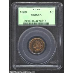 1869 1C PR65 Red PCGS. This reddish-orange example is possessed of full, glowing mint luster that is