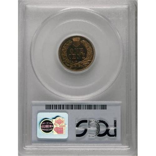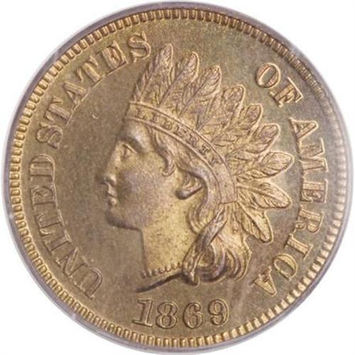 <B>1869 1C PR65 Red PCGS.</B></I> A well-mirrored proof, and not always found as such. As pointed out by Ron Sirna in the December 2002 issue of <I>Longacre's Ledger</B></I>, many proofs of this and other dates from the 1860s had the dies polished after hardening. Thus, many proofs are shallowly mirrored and show little reflectivity. This is a splendid, deeply mirrored piece that even displays a mild bit of contrast against the devices. The cherry-red color lightens slightly on the right portion of the obverse. <I><BR>From The Santa Fe Collection.</B></I><BR><BR><B>Coin Engraver:</B> James B. Longacre<BR><BR><b>Shipping:</b> Coins & Currency (<a target="_blank" href="http://www.heritageauctions.com/common/shipping.php">view shipping information</a>\)