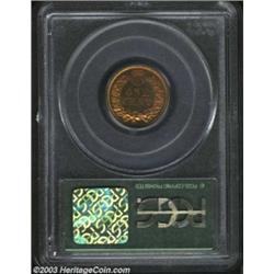 1869 1C PR66 Red PCGS. The original mintage of the proof 1869 Cent is a not overly generous 600 or so pieces. This fact, however, does not fully explain the rarity of attractive specimens in today's market. For unknown reasons, Mint personnel seem to have polished the obverse dies for this issue after the hardening process. In addition, many of the proof Indian Cents from the late 1860s and early 1870s were struck from leftover reverse dies that had been polished and repolished numerous times. This combination of factors means that many proof 1869 Cents are not deeply reflective and, thus, somewhat limited in eye appeal. Not so the present Gem. Both sides glisten with appreciably mirrored fields. The aesthetic appeal further benefits from full mint luster in deeply set olive hues that brighten to reddish-orange color under a light. Certain angles also reveal a blush of golden shading along the left reverse periphery. Neither the crisp striking definition nor the smooth surfaces are worthy of even the most trivial criticism. This is the first so graded example at PCGS to appear in a Heritage auction in at least a decade. Population: 3 in 66 Red, with none finer (1/03).From the Colburn Collection. Important notice: We expect to be auctioning lots at the rate of 200-250 per hour. On occasion eBay live bid software cannot keep up with the pace of the auctions where 4-5 lots per minute can hammer down, so we recommend that you place a realistic absentee bid now as insurance to avoid disappointment. Also please note that all Heritage/CAA lots purchased through eBay Live carry a 20% Buyer's Premium. Please make sure you read the Terms and Conditions.