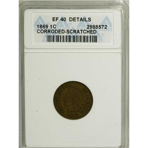 <B>1869 1C --Corroded, Scratched--ANACS. XF40 Details.</B></I> NGC Census: (15/281). PCGS Population (27/256). Mintage: 6,420,000. Numismedia Wsl. Price for NGC/PCGS coin in XF40: $308. (#2094)<BR><BR><B>Coin Engraver:</B> James B. Longacre<BR><BR><b>Shipping:</b> Coins & Currency (<a target="_blank" href="http://www.heritageauctions.com/common/shipping.php">view shipping information</a>\)