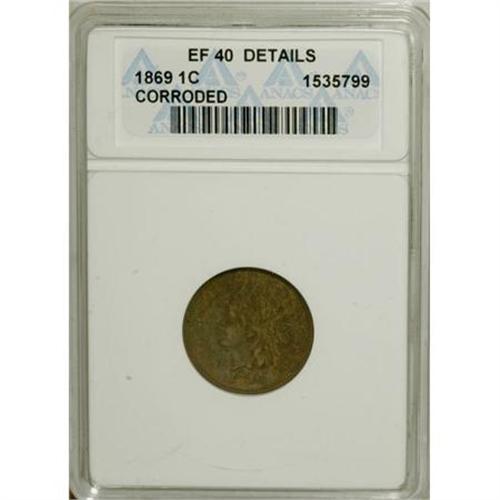 <B>1869 1C --Corroded--ANACS. XF40 Details.</B></I> NGC Census: (17/295). PCGS Population (31/277). Mintage: 6,420,000. Numismedia Wsl. Price for NGC/PCGS coin in XF40: $308. (#2094)<BR><BR><B>Coin Engraver:</B> James B. Longacre<BR><BR><b>Shipping:</b> Coins & Currency (<a target="_blank" href="http://www.heritageauctions.com/common/shipping.php">view shipping information</a>)