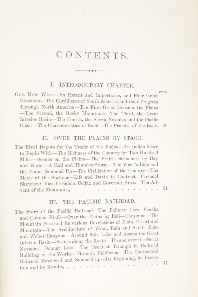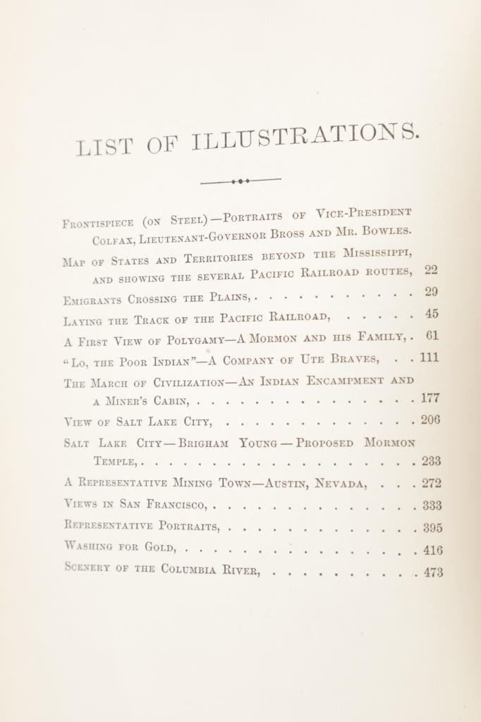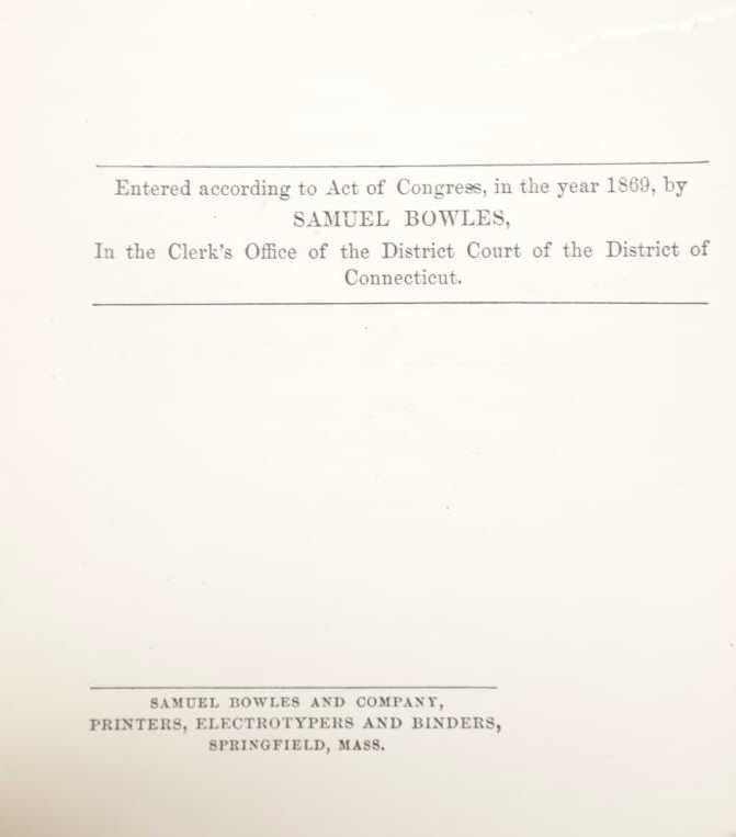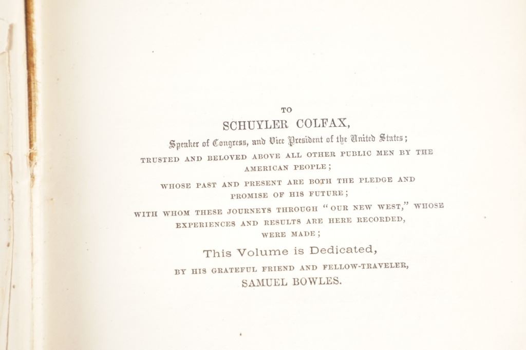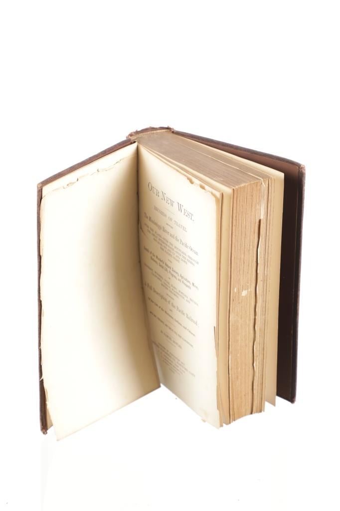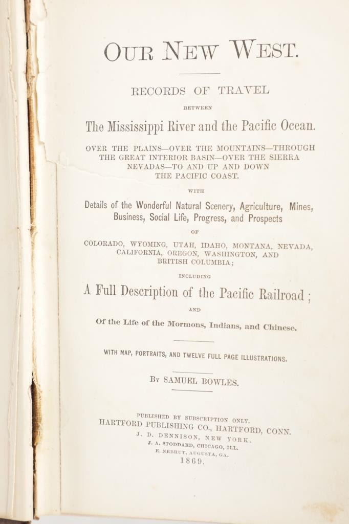 Featured in this lot is a 1869 1st edition of Our New West by Samuel Bowles. Our New West is a detailed account of Bowles' journey across the Western United States, beginning in the Mississippi River Valley and extending to the Pacific Ocean. The book is a mix of travel narrative, social commentary, and observations on the natural environment. Samuel Bowles (1826–1878) was a well-known American journalist and editor. He was the editor of the Springfield Republican, a newspaper based in Springfield, Massachusetts. Bowles was a strong advocate for political and social reform and was influential in shaping public opinion during his time. The condition of this book shows some wear to the spine and outside cover of the book with some loosening to the spine and browning to the pages consistent with the age of this book. The measurements of this book are 9" x 6" x 1 3/4". The collective weight of this book is 2lb 4oz.*