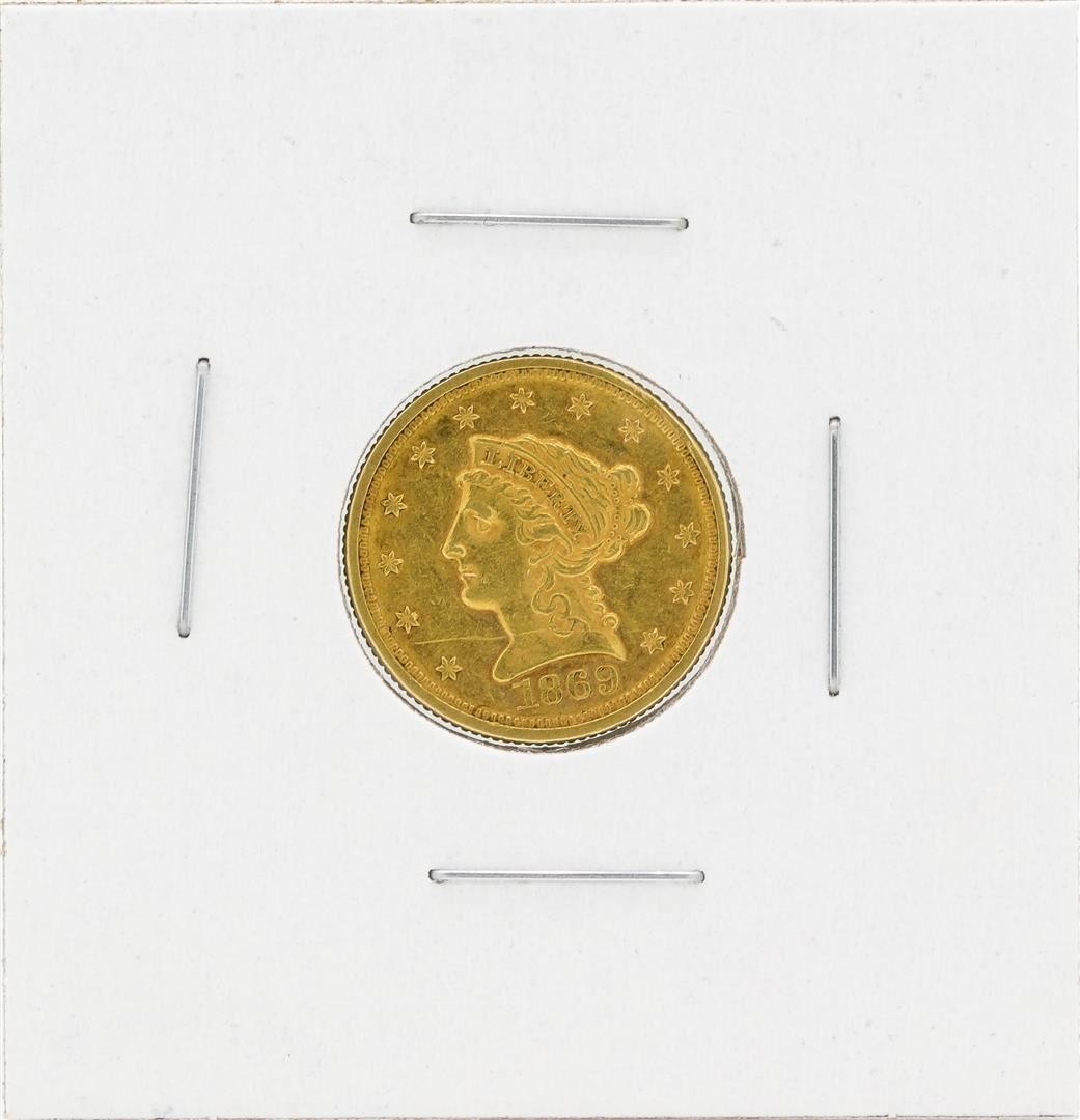 One 1869 $2 1/2 Liberty Head Quarter Eagle Gold Coin.