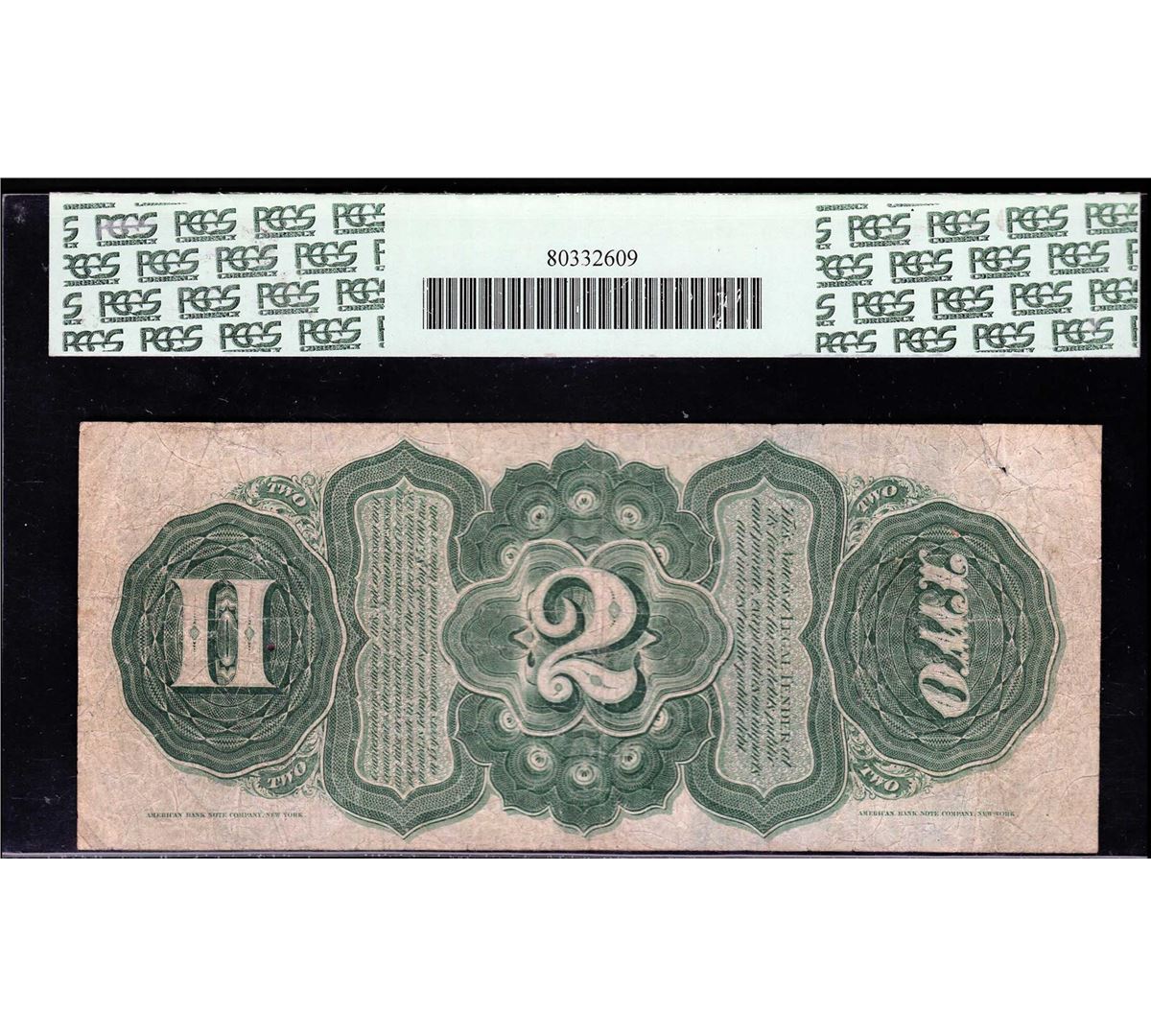 One 1869 $2 Legal Tender Rainbow Note PCGS F15 Apparent. PCGS Graded.