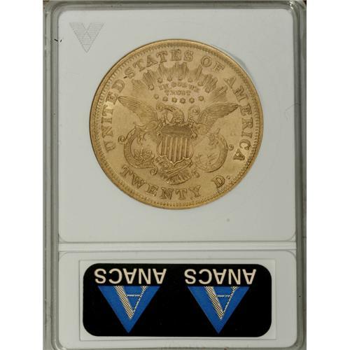 <B>1869 $20 --Cleaned--ANACS. AU53 Details.</B></I> A subdued olive-gray example that lacks obtrusive marks, and has only moderate wear on the highpoints of Liberty's tresses. A better date, struck to late to qualify for the various shipwreck hoards.<BR><BR><b>Shipping:</b> Coins & Currency (<a target="_blank" href="http://www.heritageauctions.com/common/shipping.php">view shipping information</a>)