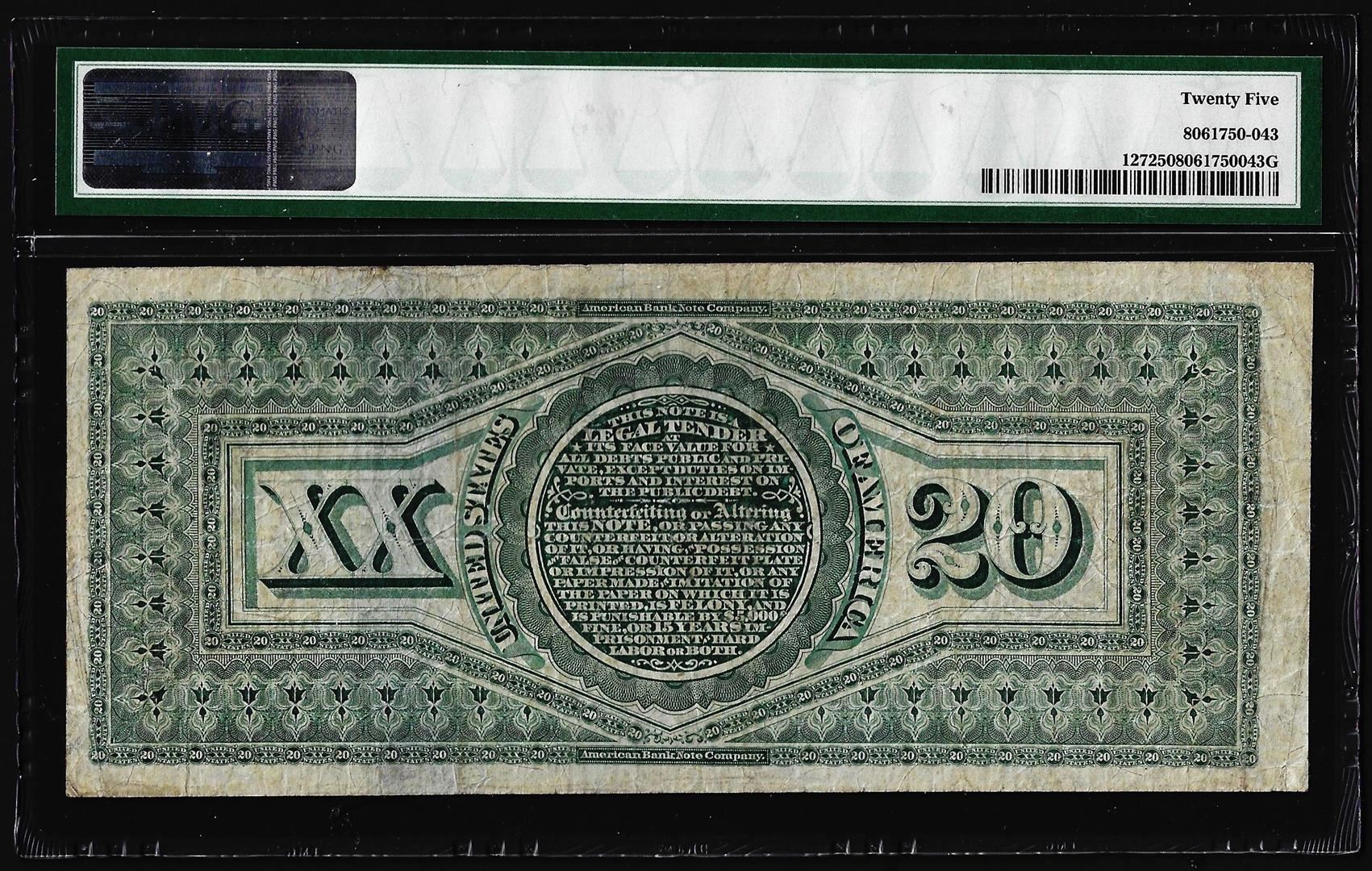 One 1869 $20 Legal Tender Note Fr.127 PMG Very Fine 25. PMG Certified.
