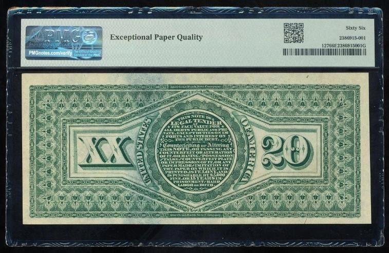 1869 $20 Rainbow Legal Tender Note PMG 66EPQ