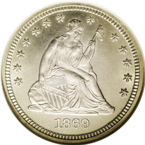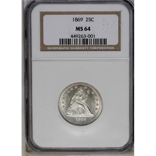 1869 25C MS64 NGC. The 1869 quarter, with a mintage of 1869