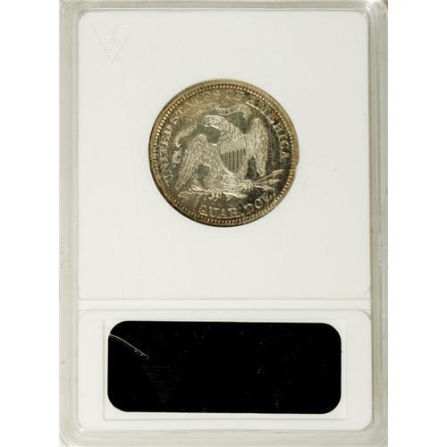 <B>1869 25C PR63 ANACS.</B></I> Intricately detailed, the fields are deeply mirrored, and there is just the slightest bit of russet toning around the margins. A scarcer early With Motto issue.<BR><BR><b>Shipping:</b> Coins & Currency (<a target="_blank" href="http://www.heritageauctions.com/common/shipping.php">view shipping information</a>)