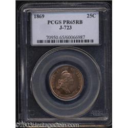 1869 25C Standard Silver Quarter Dollar, Judd-723, Pollock-804, R.6, PR65 Red and Brown PCGS.