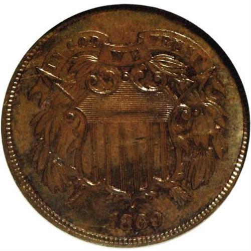 <B>1869 2C 18/18 MS63 Brown NGC.</B></I> FS-004. NGC Census: (20/75). PCGS Population (32/31). Mintage: 1,546,500. Numismedia Wsl. Price for NGC/PCGS coin in MS63: $185. (#3603)<BR><BR><B>Coin Engraver:</B> James B. Longacre<BR><BR><b>Shipping:</b> Coins & Currency (<a target="_blank" href="http://www.heritageauctions.com/common/shipping.php">view shipping information</a>)