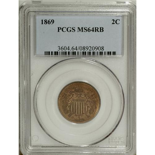 1869 2C MS64 Red and Brown PCGS. The surfaces are pred
