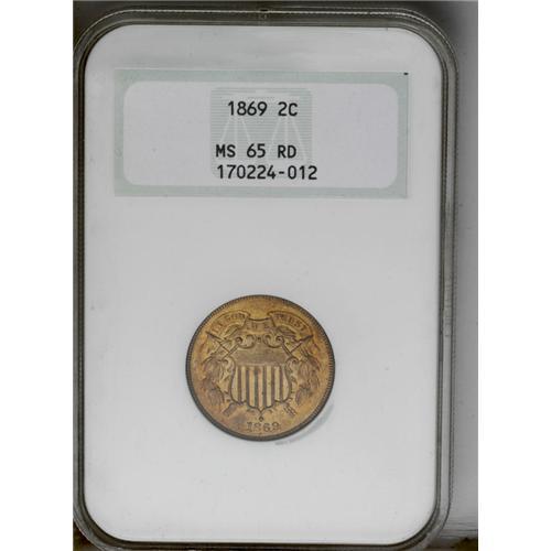 1869 2C MS65 Red NGC. Sharply defined with smooth, eve