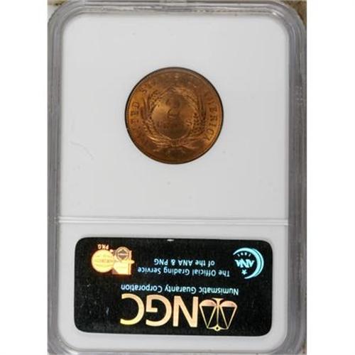 <B>1869 2C MS65 Red NGC.</B></I> A decisively struck brick-red Gem with pleasantly mark-free surfaces. Carbon is also inconsequential. By 1869, the mintages for this type had dwindled significantly from the 1864 heyday, limiting the number of full Red survivors. Census: 17 in 65 Red, 2 finer (6/07).<BR><BR><b>Shipping:</b> Coins & Currency (<a target="_blank" href="http://www.heritageauctions.com/common/shipping.php">view shipping information</a>)