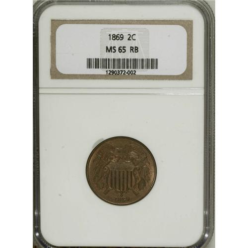 1869 2C MS65 Red and Brown NGC. The warm copper-orange