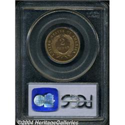 <B>1869<2C> PR64 Red PCGS.</B></I> A well mirrored specimen with bright tan color and numerous striations across both sides. Traces of carbon along the upper obverse border preclude Gem status. <BR><BR><B>Important notice:</B> Heritage usually auctions material at the rate of 200-250 lots per hour. On some occasions eBay Live bid software or the Internet may not be able to keep up with the pace of the auction. We recommend placing a realistic absentee bid now as insurance to avoid disappointment. Occasionally the auctioneer may eliminate or reject an eBay Live bid, and the auctioneer may also reopen a lot after the close of the eBay live bidding (usually because we missed an audience bid), and may reject your bid even if it shows you as the winning bidder. By bidding via eBay Live, you agree that Heritage may award the lot to another bidder at its sole discretion under the circumstances described above or any other reasonable circumstances. Since eBay bids are not shown to us until we open the lot on the floor, we treat those bids just like floor bids. In most cases the floor responds before the eBay bid is presented to us, due to Internet lag time, so for consistency we have made it a policy that floor bids are always considered first over tie eBay live bids. Also please note that all Heritage lots purchased through eBay Live carry a 20% Buyer's Premium. Please make sure you read the Terms and Conditions before you bid.