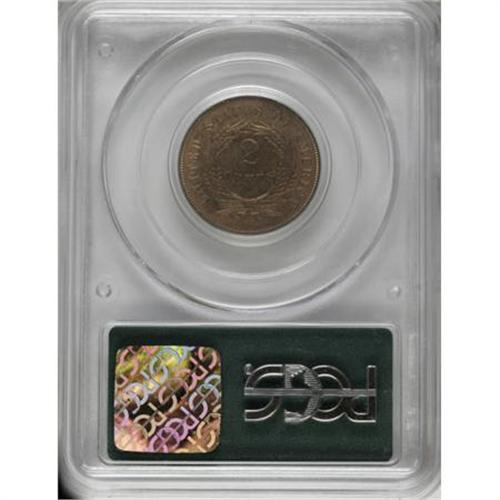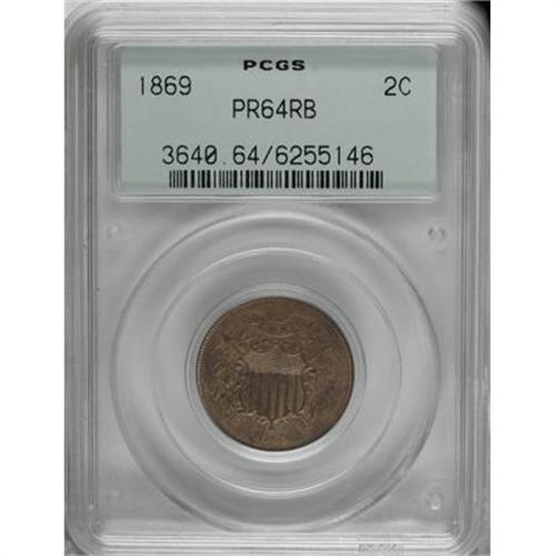 <B>1869 2C PR64 Red and Brown PCGS.</B></I> PCGS Population (78/62). NGC Census: (40/74). Mintage: 600. Numismedia Wsl. Price for NGC/PCGS coin in PR64: $500. (#3640)<BR><BR><B>Coin Engraver:</B> James B. Longacre<BR><BR><b>Shipping:</b> Coins & Currency (<a target="_blank" href="http://www.heritageauctions.com/common/shipping.php">view shipping information</a>)
