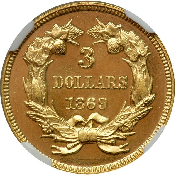 As with the Proof 1868, the 1869 has an original mintage of a mere 25 coins, as indicated. Of this already limited total, only 12-14 pieces have survived, including several impounded in museum collections. For the collector or investor seeking a truly rare coin, the Proof 1869 Three-Dollar gold piece comes highly recommended.