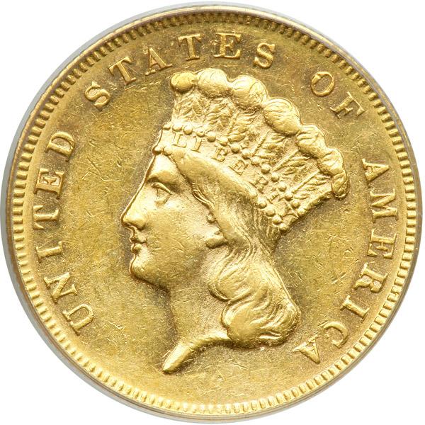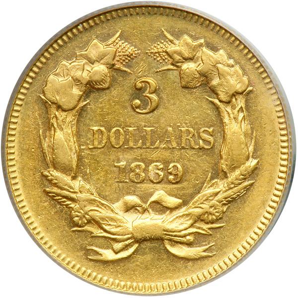 1869. PCGS graded AU-55. Well struck with plenty of flashy mint luster still intact. Only 2,500 struck. Pop 26; 56 finer (PCGS # 7990) .