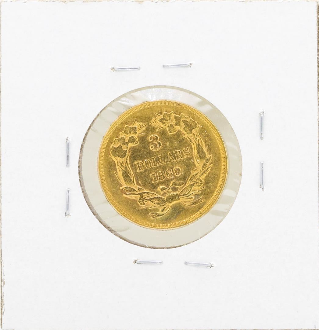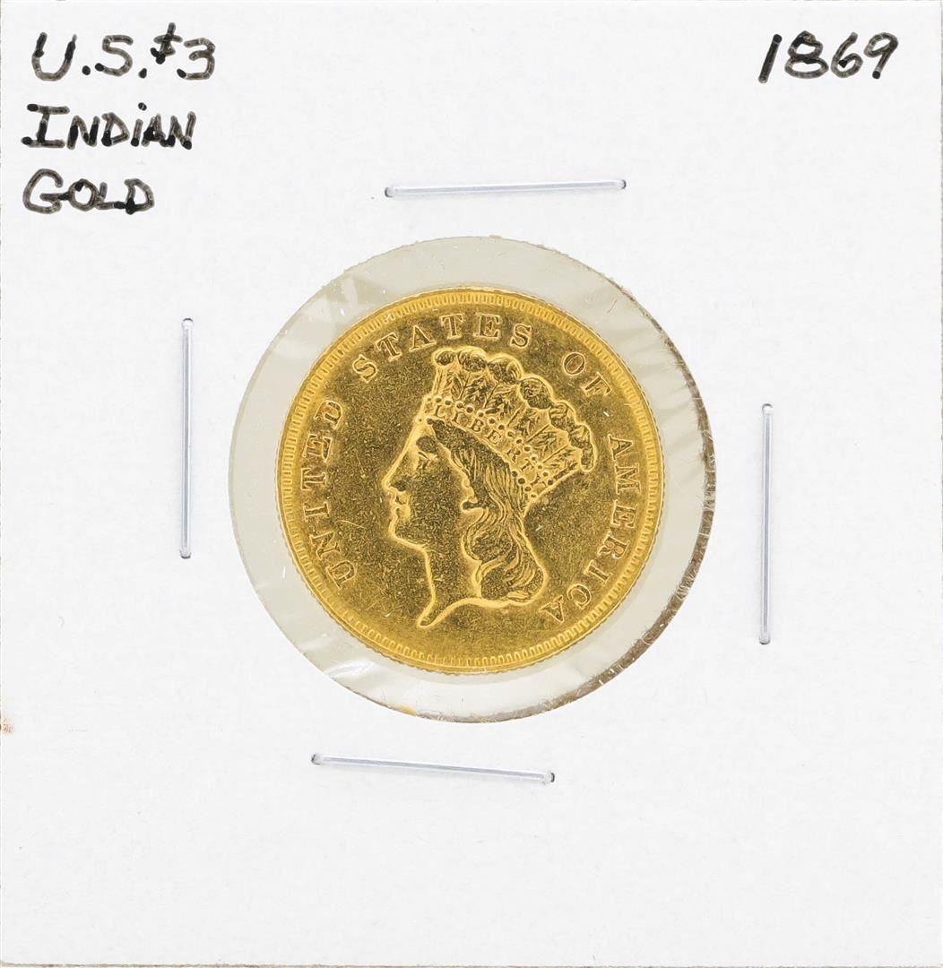 One 1869 $3 Indian Princess Head Gold Coin.