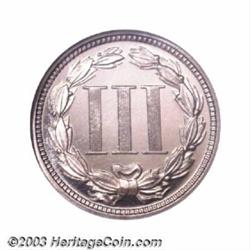 <TR><TD width="100%"><TABLE cellSpacing=1 cellPadding=3 width="100%" border=0><TBODY><TR><TD width="100%" bgColor=#79735c><FONT face=arial color=#ffffff size=3><B>Description</B> </FONT></TD></TR><TR><TD width="100%" bgColor=#ffffff><FONT face=arial size=2><B>1869 3CN PR66 * Cameo NGC.</B></I> Fully struck with significant field depth and blatant, eye-appealing cameo contrast on each side. A few raised die lines (as struck) are evident on the obverse, and bisecting the reverse from the upper left to the lower right rim. A couple of small lint marks (also as struck) reside near the obverse center. A flashy and well preserved specimen, one of only ten graded as PR66 Cameo at NGC, with none finer (4/03). This coin also has a star (*) added to the grade, by NGC, which indicates a high degree of eye appeal. </FONT></TD></TR></TBODY></TABLE></TD></TR></TBODY></TABLE><BR><A name=PricesRealized></A><TABLE cellSpacing=0 cellPadding=0 width="100%" bgColor=#000000 border=0><TBODY><TR><TD width="100%"><TABLE cellSpacing=1 cellPadding=3 width="100%" border=0><TBODY><TR><TD width="100%" bgColor=#79735c><A name=PR><FONT face=arial color=#ffffff size=3><B>Previous Prices from Heritage Auctions</B> </FONT></A></TD></TR><TR><TD bgColor=#f6f6ed><TABLE cellSpacing=0 cellPadding=0 width="100%" border=1><TBODY><TR><TD align=middle width="33%"><B>Date</B></TD><TD align=middle width="33%"><B>Service</B></TD><TD align=middle width="33%"><B>Price</B></TD></TR><TR bgColor=whitesmoke><TD width="33%"><B>09/28/2002</B></TD><TD width="33%">NGC</TD><TD width="33%">$3,220.00</TD></TR><TR bgColor=whitesmoke><TD width="33%"><B>05/21/2002</B></TD><TD width="33%">NGC</TD><TD width="33%">$1,380.00</TD></TR><TR bgColor=whitesmoke><TD width="33%"><B>05/03/2003</B></TD><TD width="33%">NGC</TD><TD width="33%">$2,300.00</TD></TR></TBODY></TABLE></TD></TR><TR><TD bgColor=#ffffff><FONT face=arial size=1 ?>PLEASE NOTE: All prices realized reflect the final hammer price PLUS the buyer's premium in auctions that charge a buyer's premium. Each item has a notation at the top of the listing indicating whether that lot included a buyer's premium. Example: A item that sells with a final hammer price of $100 and a 20% buyer's premium will display with a price realized of $120. All information listed is intended to be as accurate as possible, but errors are possible. Please use this guide carefully and inform us of any inaccuracies. </FONT></TD></TR></TBODY></TABLE></TD></TR></TBODY></TABLE><BR><TABLE cellSpacing=0 cellPadding=0 width="100%" bgColor=#000000 border=0><TBODY><TR><TD width="100%"><TABLE cellSpacing=1 cellPadding=3 width="100%" border=0><TBODY><TR><TD width="100%" bgColor=#79735c colSpan=6><FONT face=arial color=#ffffff size=3><B>Price Guide*</B> </FONT></TD></TR><TR bgColor=#f6f6ed><TD align=middle><B>Grade</B> </TD><TD align=middle><B>Coin World<BR>(Trends)</B> </TD><TD align=middle><B>Numismedia<BR>Retail</B> </TD><TD align=middle><B>Numismedia<BR>Wholesale</B> </TD><TD align=middle><B>Coin<BR>Universe</B> </TD><TD align=middle><B>Heritage<BR>Value Index</B> </TD></TR><TR bgColor=#ffffff><TD align=middle>65</TD><TD align=right>---</TD><TD align=right>---</TD><TD align=right>---</TD><TD align=right>$1,200.00</TD><TD align=right>$739.17</TD></TR><TR style="FONT-WEIGHT: bold" bgColor=#cccfdd><TD align=middle>66</TD><TD align=right>---</TD><TD align=right>---</TD><TD align=right>---</TD><TD align=right>---</TD><TD align=right>---</TD></TR><TR bgColor=#ffffff><TD align=middle>67</TD><TD align=right>---</TD><TD align=right>---</TD><TD align=right>---</TD><TD align=right>---</TD><TD align=right>---</TD></TR><TR bgColor=#ffffff><TD colSpan=6><FONT size=1>*All information listed is intended to be as accurate as possible, but errors are possible. No item may be returned or refused based on this information which is provided as a service to our customers. You should contact each pricing source directly to determine the accuracy of this information. </FONT></TD></TR></TBODY></TABLE></TD></TR></TBODY></TABLE><BR><TABLE cellSpacing=0 cellPadding=0 width="100%" bgColor=#000000 border=0><TBODY><TR><TD width="100%"><TABLE cellSpacing=1 cellPadding=3 width="100%" border=0><TBODY><TR><TD width="100%" bgColor=#79735c><FONT face=arial color=#ffffff size=3><B>Population Guide</B> </FONT></TD></TR><TR bgColor=#ffffff><TD align=middle><!-- Begin Output of Population Grid--><TABLE cellSpacing=0 cellPadding=0 width="100%" border=0><TBODY><TR><TD vAlign=center><TABLE cellSpacing=0 width="100%" border=1 cellsadding="3"><TBODY><TR><TD vAlign=center><TABLE cellSpacing=0 cellPadding=3 width="100%" border=1><TBODY><TR><TD vAlign=center align=middle bgColor=#f0f1e8 colSpan=2 <CENTER><FONT face=Arial size=2><B>PCGS Pop </B></FONT><CENTER></CENTER></TD><TD vAlign=center align=middle bgColor=#f0f1e8 colSpan=2><CENTER><FONT face=Arial size=2><B>NGC Pop</B></CENTER></FONT></TD></TR><TR><TD vAlign=center><FONT face=Arial size=2>(66)</FONT> </TD><TD vAlign=center align=right><FONT face=Arial size=2>2</FONT> </TD><TD vAlign=center><FONT face=Arial size=2>(66)</FONT> </TD><TD vAlign=center align=right><FONT face=Arial size=2>10</FONT> </TD></TR><TR><TD vAlign=center><FONT face=Arial size=2>(>66)</FONT> </TD><TD vAlign=center align=right><FONT face=Arial size=2>1</FONT> </TD><TD vAlign=center><FONT face=Arial size=2>(>66)</FONT> </TD><TD vAlign=center align=right><FONT face=Arial size=2>0</FONT> </TD></TR></TBODY></TABLE></TD></TR></TBODY></TABLE></TD></TR></TBODY></TABLE><!-- End Output of Population Grid--></TD></TR></TBODY></TABLE></TD></TR></TBODY></TABLE><BR><TABLE cellSpacing=0 cellPadding=0 width="100%" bgColor=#000000 border=0><TBODY><TR> Important notice: We expect to be auctioning lots at the rate of 200-250 per hour. On occasion eBay live bid software cannot keep up with the pace of the auctions where 4-5 lots per minute can hammer down, so we recommend that you place a realistic absentee bid now as insurance to avoid disappointment. Also please note that a