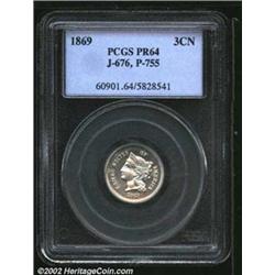 1869 3CN Three Cent Nickel, Judd-676, Pollock-753, 755, R.5, PR 64 PCGS.