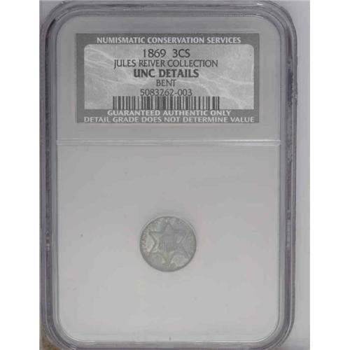 1869 3CS --Bent--NCS. UNC Details. Sharply struck. Virt 1869[3CS]--Bent--NCS. Unc Details.