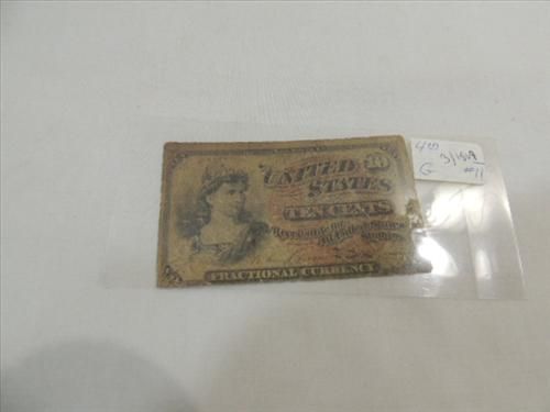 1869 4TH ISSUE 10 CENT FRACTIONAL CURRENCY. AS SHOWN. VIEW PICTURE FOR DETAIL.