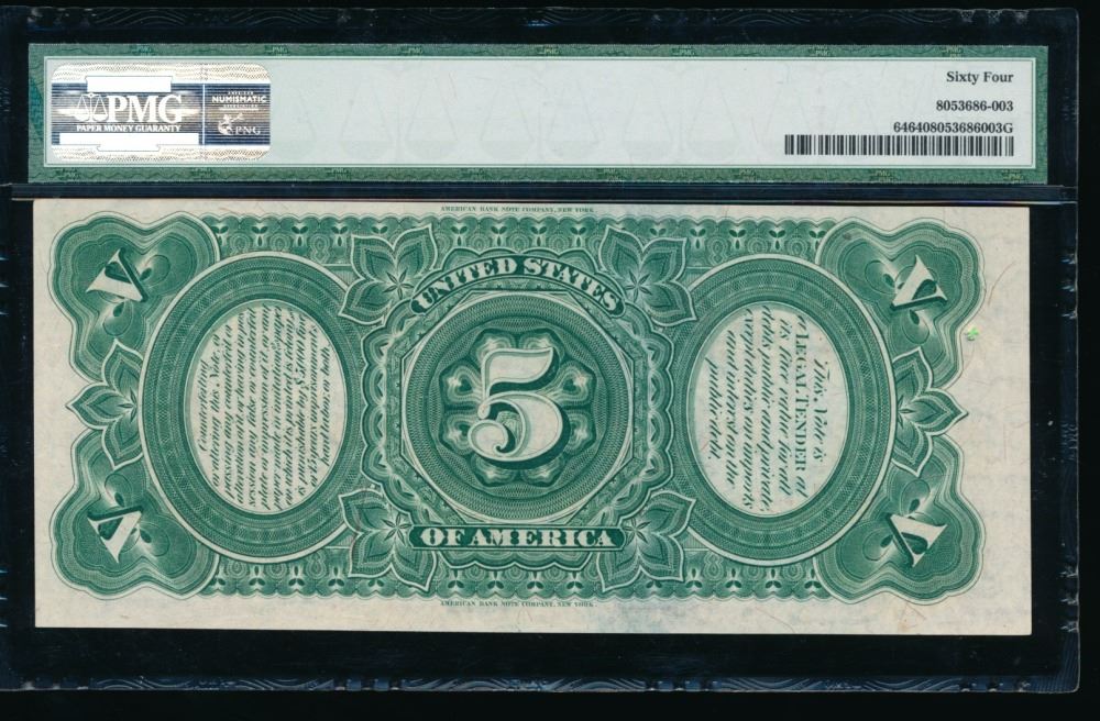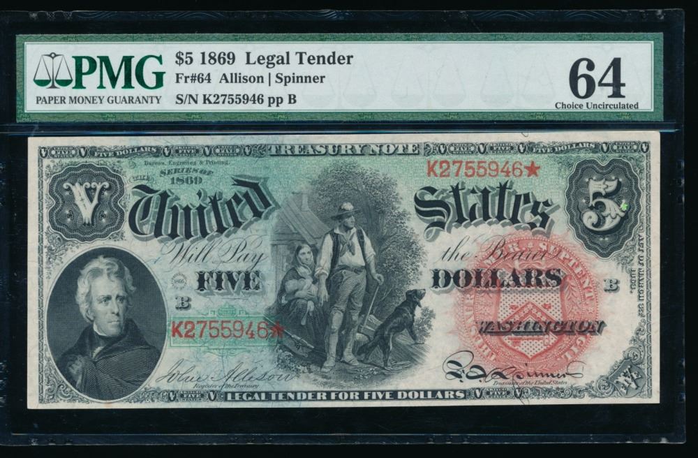 One 1869 $5 Legal Tender Note PMG 64.
