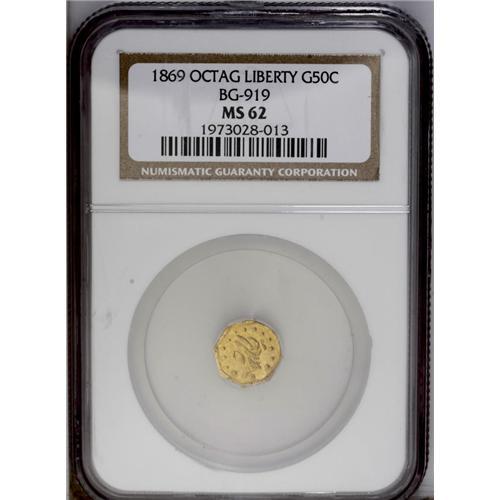 1869 50C Liberty Octagonal 50 Cents, BG-919, R.4, MS62 1869[50C] Liberty Octagonal 50 Cents, BG-919,