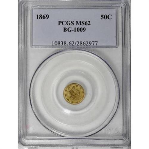 1869 50C Liberty Round 50 Cents, BG-1009, R.5, MS62 PC