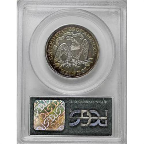 <B>1869 50C PR63 PCGS.</B></I> An attractive example of this post-war proof issue. The iridescent amber, blue, and green patina creates a two-tone effect next to the essentially brilliant, boldly impressed devices. One of only 600 pieces struck. <BR><BR><B>Coin Engraver:</B> Christian Gobrecht<BR><BR><b>Shipping:</b> Coins & Currency (<a target="_blank" href="http://www.heritageauctions.com/common/shipping.php">view shipping information</a>)
